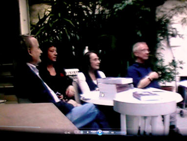 De Gauche à droite, Laurent Danchin, Mireille Petit-Choubrac, Joëlle-Andrée Deniot, Jacky Réault (Vue extraite du film de Jean-Luc Giraud, publiée par Youtube et sur le site Mycelium). Prise de vue L Delmaire. Saisie photographique JR.